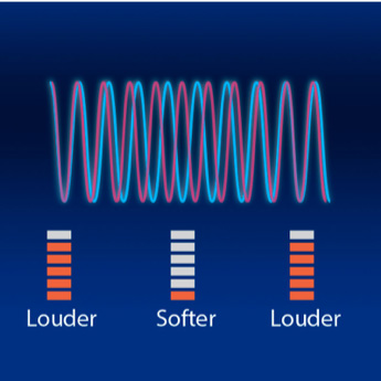 If you’ve ever tuned a guitar, or been at a concert while someone tuned up, you have probably heard interference beats. Those are the beats that seem to happen when two notes are close to each other. Two tones are playing, each pure, but you hear a wah-wah-wah-wah somewhere in there. It’s because the two notes, each made of nice clear vibrations, are slightly mismatched. Sometimes the two tones vibrate together, which makes them louder, and sometimes one pulse goes up while the other goes down, and the vibrations in the air cancel each other out, making the tone softer. What you’re hearing is the rhythmic loud-soft beat called an interference beat.